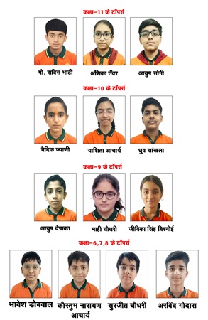 चयनित होने वाले टॉपर्स विद्यार्थियों में कक्षा 6 के छात्र भावेश डोबवाल है, जिन्होंने 100 में से 93 अंक प्राप्त किए है, कक्षा 7 से टॉपर छात्र कौस्तुभ नारायण आचार्य के 100 में से 90 अंक, कक्षा 8 के टॉपर सुरजीत चौधरी के 100 में से 83 अंक, कक्षा 9 के टॉपर प्रिंस चौधरी के 100 में से 81 अंक, कक्षा 10 के टॉपर वैदिक ज्याणी के 100 में से 92 अंक तथा कक्षा 11 के टॉपर मोहम्मद सविस भाटी के 100 में से 88 अंक है। कक्षा 6 में से 2 विद्यार्थी, कक्षा 7 में से 1, कक्षा 8 में से 5, कक्षा 9 से 19, कक्षा 10 से 29 व कक्षा 11 से 13 विद्यार्थी द्वितीय लेवल के लिए चयनित हुए हैं। वीवीएम का द्वितीय लेवल 19 नवंबर व 23 नवंबर 2025 को ऑनलाईन आयोजित होगा।