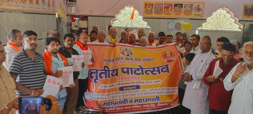 बीकानेर Abhayindia.com बीकानेर के डेरु माता मंदिर में “संकल्प मानस भवन” के 12वें सुंदरकांड की शुरुआत केला मानस प्रचार समिति (पुरोहित) केला मानस प्रेमी माणक जोशी, नारायण पुरोहित, संतोष पुरोहित, सी.ए. महेंद्र चूरा एवं गोवर्धन व्यास द्वारा की गई। कुलदेवी डेहरू माता मंदिर के तीसरे पाटोत्सव को 17 को “महोत्सव” के रूप में मनाने के लिए पाटोत्सव संयोजन समिति का सर्वसम्मति से जेठाराम पुरोहित को संयोजक मनोनीत किया गया। सह-संयोजक दुर्गा प्रसाद पुरोहित (बीठनोक) व सुरेंद्र ओझा (लव ओझा) को मनोनीत किया गया। डेहरु माता सेवा समिति के अध्यक्ष एडवोकेट पवन पुरोहित ने बताया कि इस आयोजन समिति में समस्त कार्यकारिणी एवं ट्रस्टीगण सदस्य होंगे।